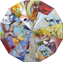 Although part of the whole, looked at separetely the art-works could not be more different. Each of the 12 paintings is unique, not unlike we perceive ourselves, beeing one of a kind, without comparison. Screaming, loud, introverted, secretive, romantic, aggressive, scared and beautiful in our own way.