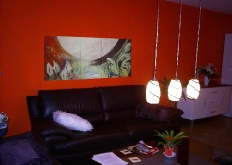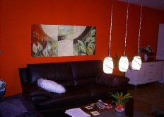 Es sollten grüne Pflanzen vorkommen, um die organge-farbige Wand zu beleben